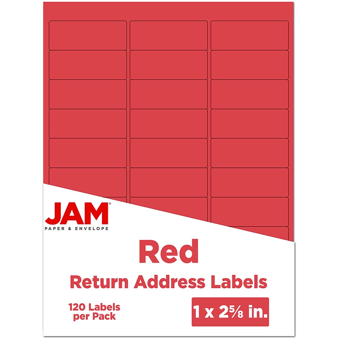 JAM Paper Laser/Inkjet Mailing Address Labels, 1" x 2 5/8", Red, 30 Labels/Sheet, 4 Sheets/Pack (4514939)