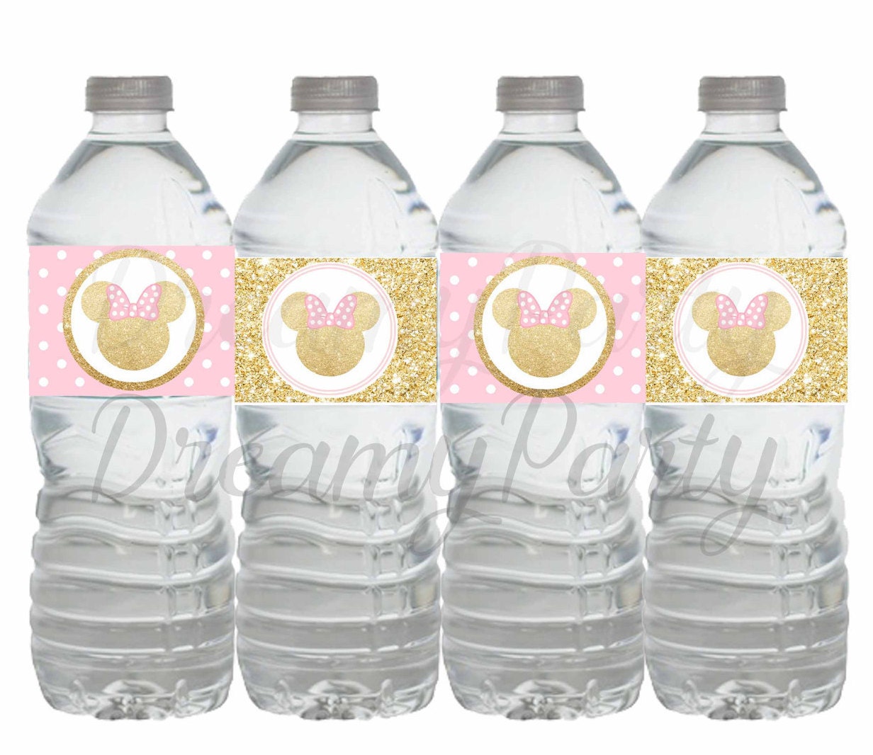 Minnie Mouse Water bottle labels, Minnie Mouse pink and gold water labels, Minnie Mouse pink and gold water bottle labels, Digital File.
